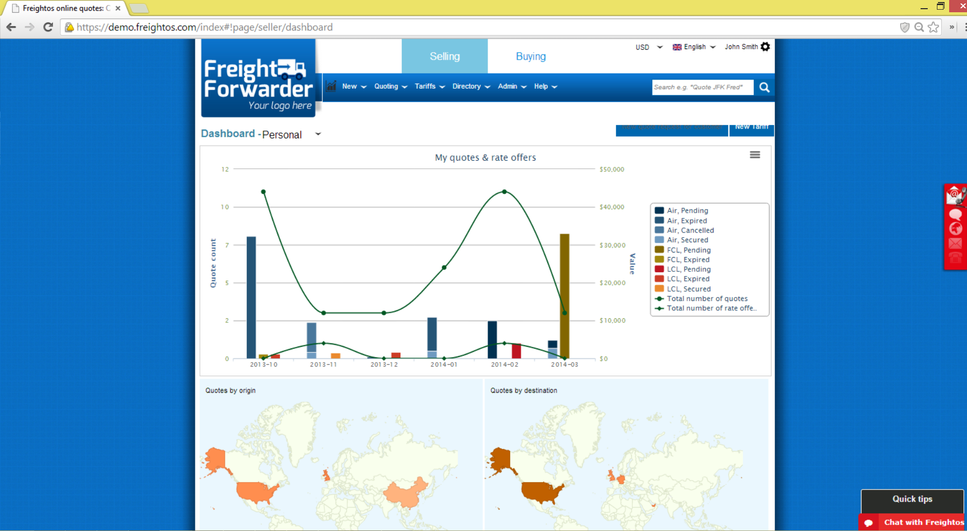 No other company is capable of automatically generating door-to-door, multi-mode quotes online on a customer-facing website. The Freightos Network is also the only network of freight forwarders automatically quoting to each other.