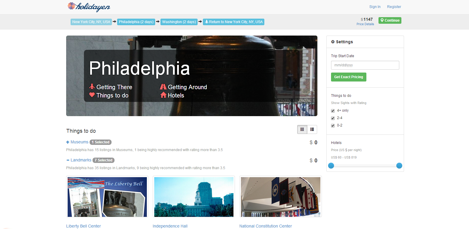 Holidayen provides completely personalized travel packages with recommendations and booking options for attractions, activities, hotels, transportation, tours and cultural experiences in more than 300 destinations worldwide. Holidayen also provides an optimized itinerary for every single day of the trip that can be accessed via any device and shared with friends.