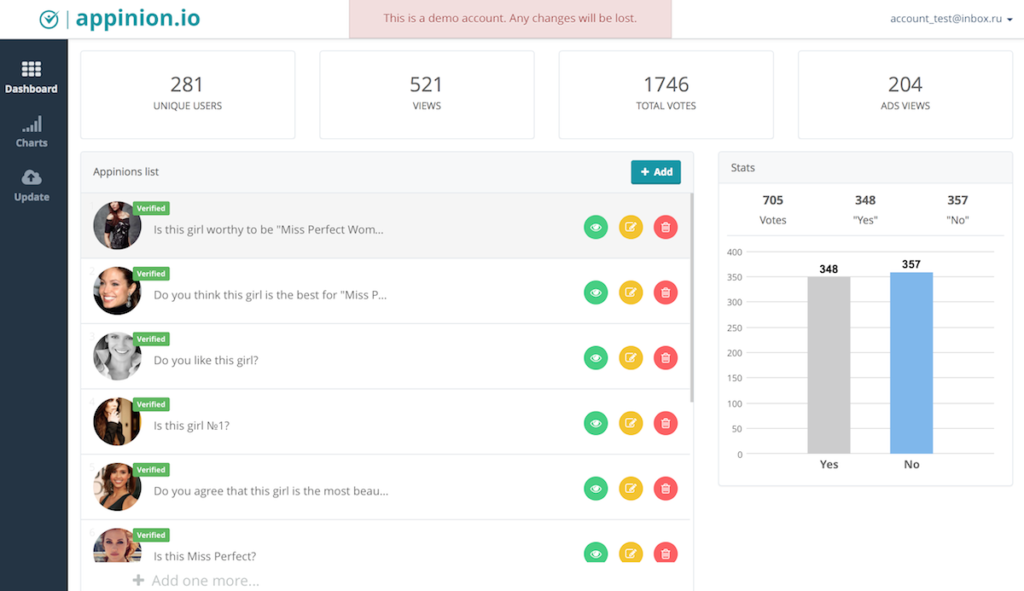 COMPANY: Appinion.io PRODUCT/SERVICE DESCRIPTION: Easily create engaging voting apps for TV, radio and event audiences. Every minute, all over the...