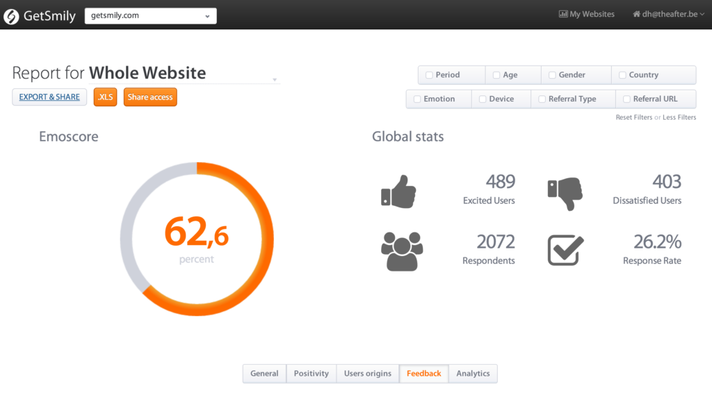 COMPANY: GetSmily PRODUCT/SERVICE DESCRIPTION: Customer feedback right from your website. GetSmily’s software allows companies to measure the...